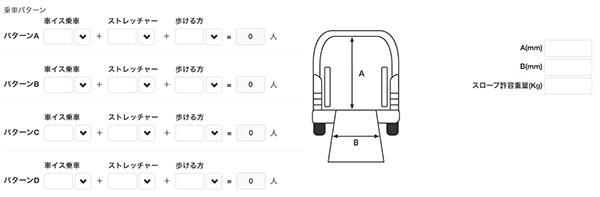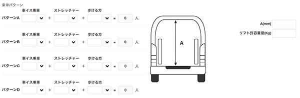 装置の寸法、仕様等は選択した車両クラスによって入力内容が異なります。