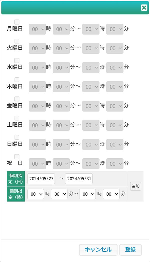 曜日別、または日付別に、異なる営業時間を設定することができます。